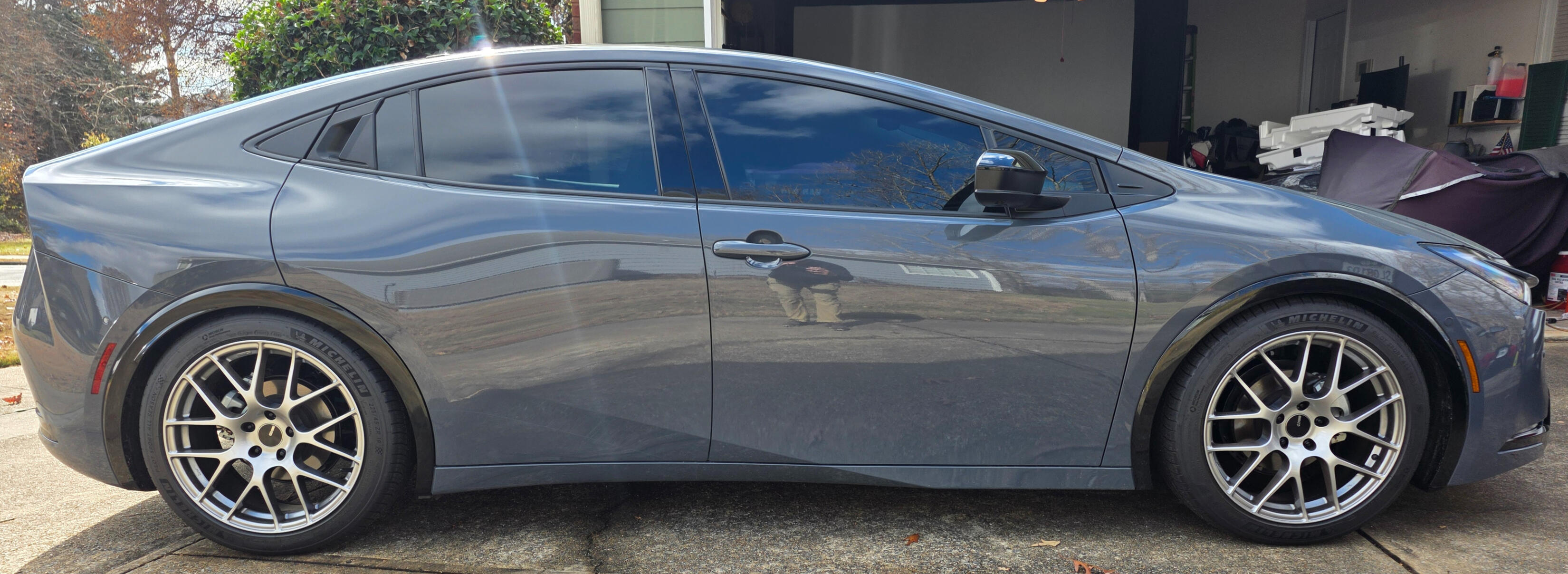 The exterior of ASL-S Build No. 001 was refined to create a more assertive yet cohesive presence while preserving the aerodynamic integrity of the Prius platform. The Guardian Grey finish is complemented by a series of subtle but deliberate upgrades designed to enhance proportion, stance, and visual continuity.A lowered ride height achieved through Eibach springs establishes a more planted posture without compromising daily drivability. Wheel and tire selection was curated to balance aesthetic impact with all-season performance and proper load rating for the hybrid chassis. Full-body XPEL PPF and Gtechniq ceramic treatment were applied to preserve the finish and elevate the vehicle’s long-term appearance.The full AIMGAIN exterior enhancements (front lip, rear diffuser, side skirts, roof spoiler, rear spoiler) are currently in production with estimated delivery in mid-2026. These components will be integrated into ASL-S Build No. 001 upon arrival and the build documentation will be updated accordingly.The exterior is intentionally free of unnecessary ornamentation. Each component—paint, trim, stance, and protection—was selected to support a unified design language that reflects the ASL-S philosophy: refinement without excess.