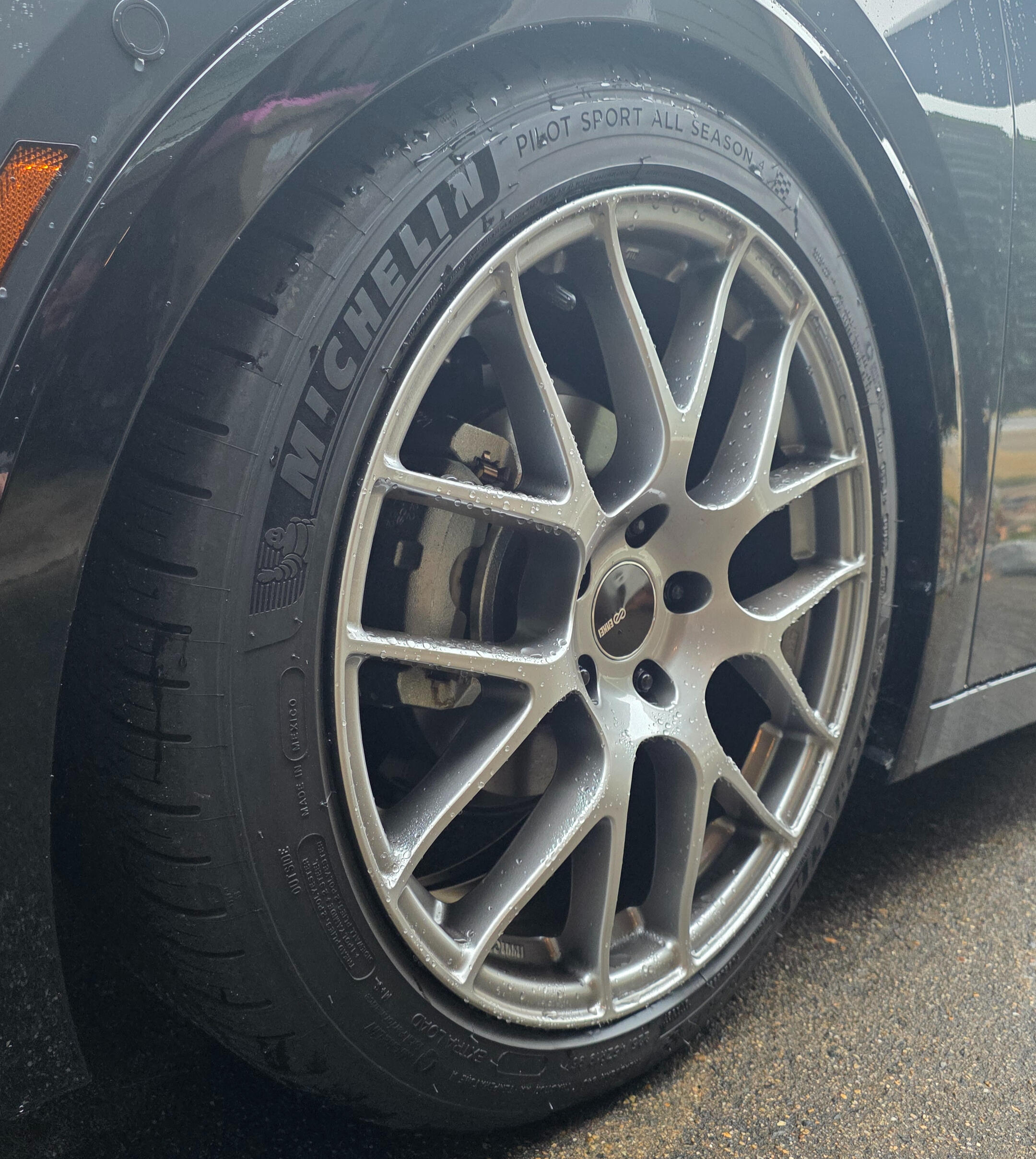 • 225/45R19 Michelin Pilot Sport A/S tires — improved braking stability, enhanced dry/wet grip, and increased safety compared to the OEM configuration